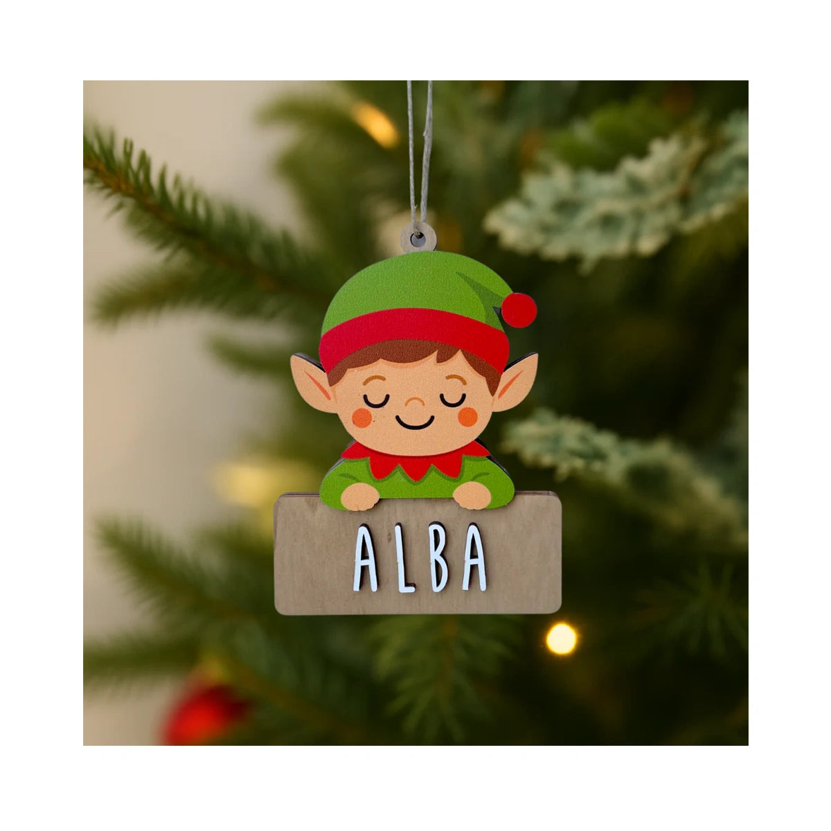 Añade un toque mágico a tu árbol con este adorno navideño de madera en forma de simpático duende. Gracias a su kit de letras personalizable, podrás escribir el nombre que quieras: niños, pareja, familia o incluso tu mascota.
