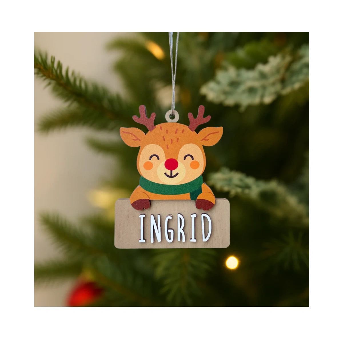 Añade un toque mágico a tu árbol con este adorno navideño de madera en forma de simpático reno. Gracias a su kit de letras personalizable, podrás escribir el nombre que quieras: niños, pareja, familia o incluso tu mascota.