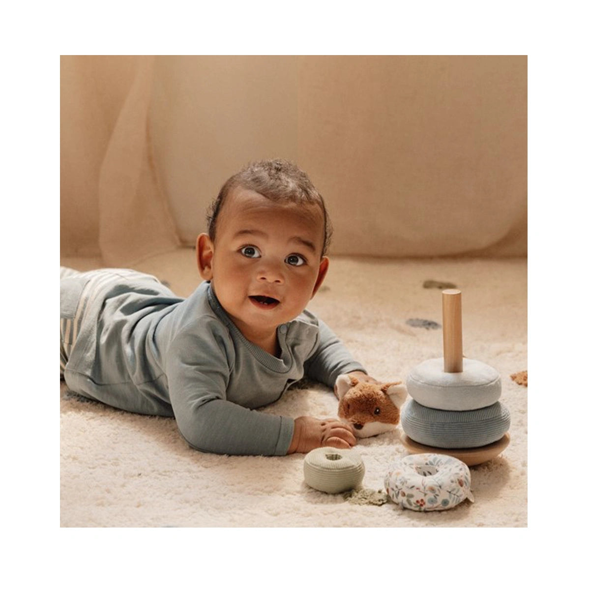 ¡Que empiece la aventura del apilamiento! Con este adorable apilador de anillos oscilante, los peques podrán poner a prueba su destreza mientras observan cómo el simpático zorrito baila y gira cuando completan la torre.