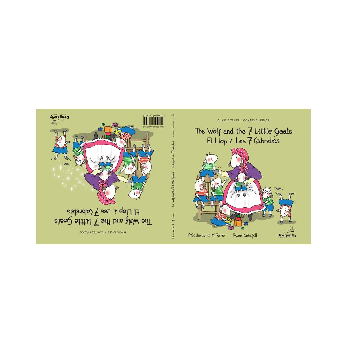 El Libro Bilingüe de el lobo y los 7 cabritillos ofrece una experiencia única con dos versiones del cuento clásico en un solo libro: la tradicional con el lobo malo y una versión mágica donde el lobo es bueno.