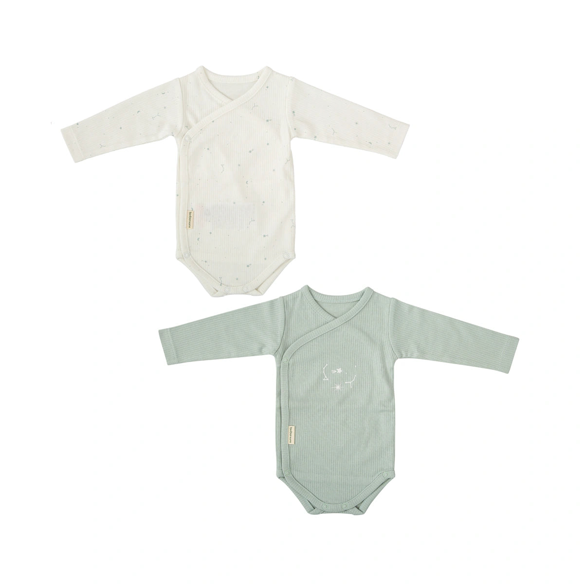 Descubre el máximo confort y estilo para tu bebé con este pack de 2 bodies de manga larga de Bimbidreams, perfectos para recién nacidos de 0 a 1 mes. Con tiernos estampados, estos bodies están confeccionados en una mezcla de 50% algodón orgánico y 50% bambú viscosa, asegurando la máxima suavidad y cuidado para la piel sensible del bebé.