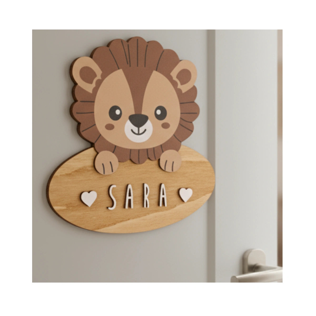 Transforma la habitación de tu peque con esta encantadora placa decorativa personalizada en forma de león. Diseñada para destacar con un estilo natural y divertido, puedes personalizarla con el nombre que elijas, creando un detalle único y especial.