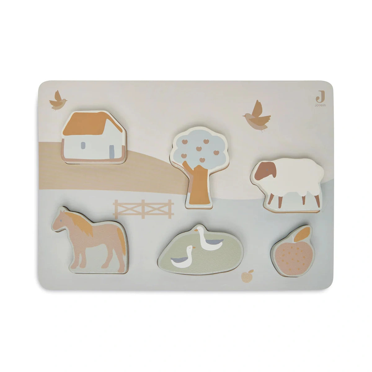 El rompecabezas de madera Jollein es el juguete perfecto para combinar diversión y aprendizaje en los más pequeños. Consta de 6 piezas gruesas y fáciles de agarrar, ideales para que los niños jueguen de manera segura mientras desarrollan sus habilidades.