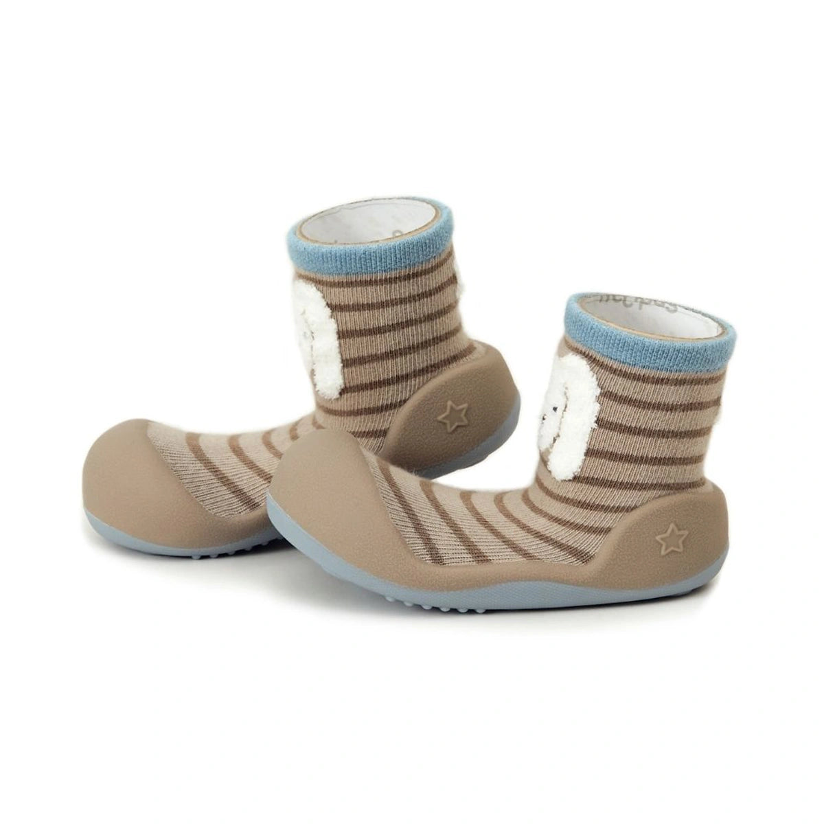 Attipas es un calzado respetuoso que sólo protege, sin interferir en la pisada y permitiendo un correcto desarrollo del pie del bebé. Un calzado que proporciona libre movimiento y es por tanto lo más parecido a ir descalzo. Un calzado desarrollado por científicos de la Universidad de Seúl elaborado simplemente para proteger el pie del bebé cuando el entorno o el clima no permite al bebé ir descalzo.