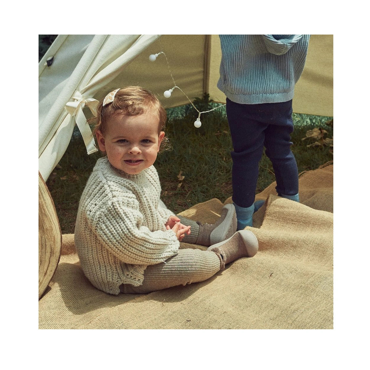 Se ajusta completamente al pie del bebé otorgándole así una completa flexibilidad y adaptabilidad tanto en suela como en la parte del calcetín.